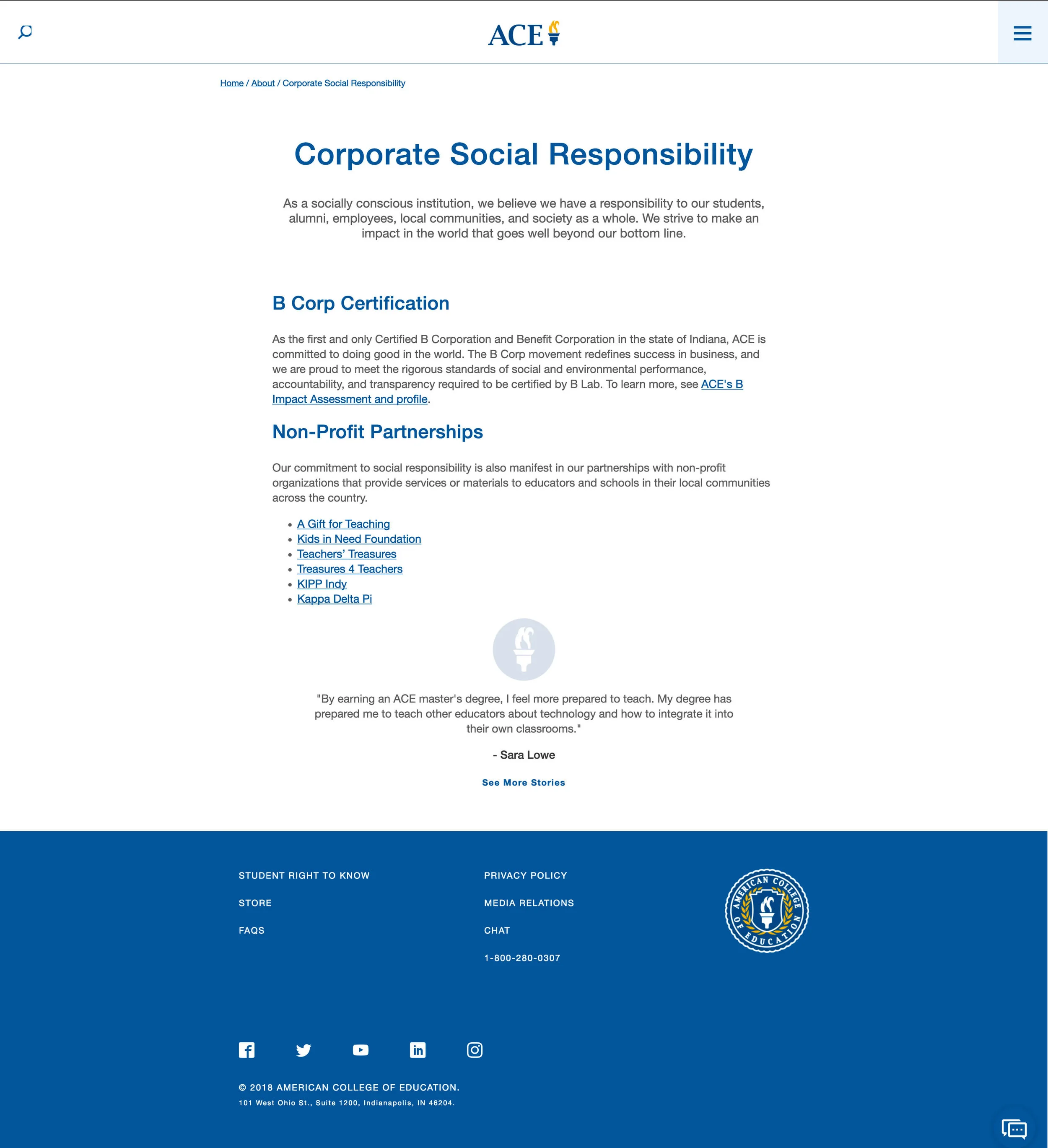 Research showed that students want to hear from other students about the college. And we needed someplace on the site for the new About Us video and the student profiles videos.